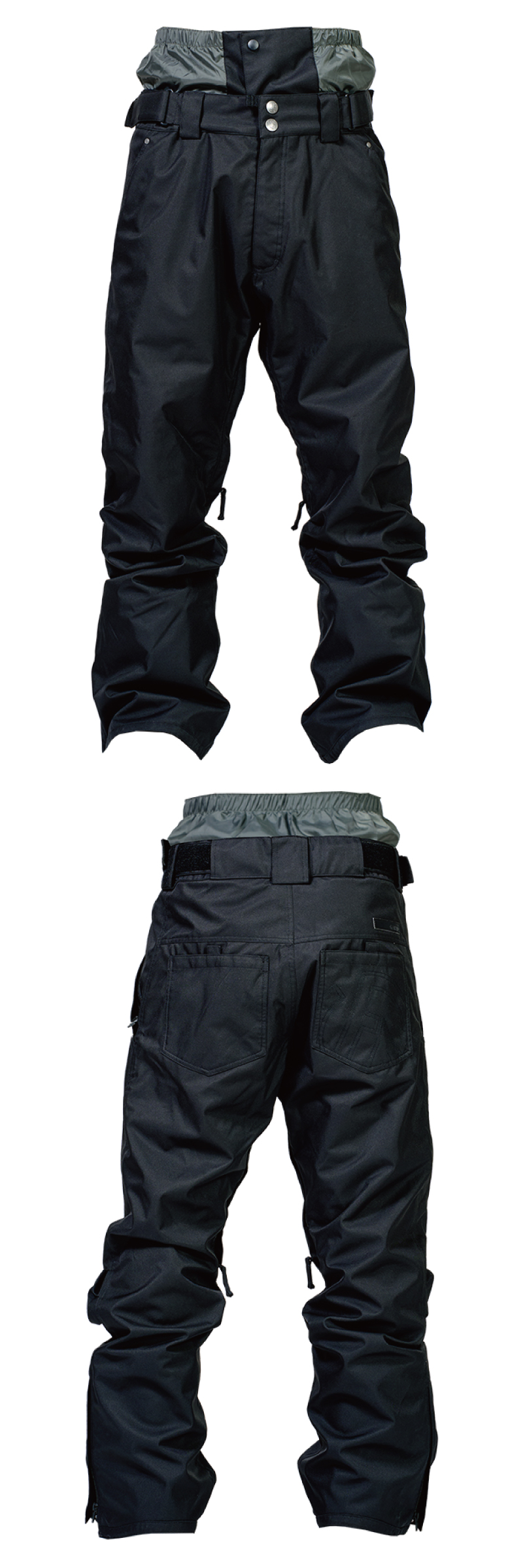 腰からの雪の侵入を防ぐウエストゲーター。